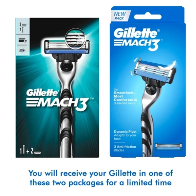 GILLETTE Mach 3 R+4, Cartridges Blades with Razor (4 Cartridge+ 1 Razor Handle), Men